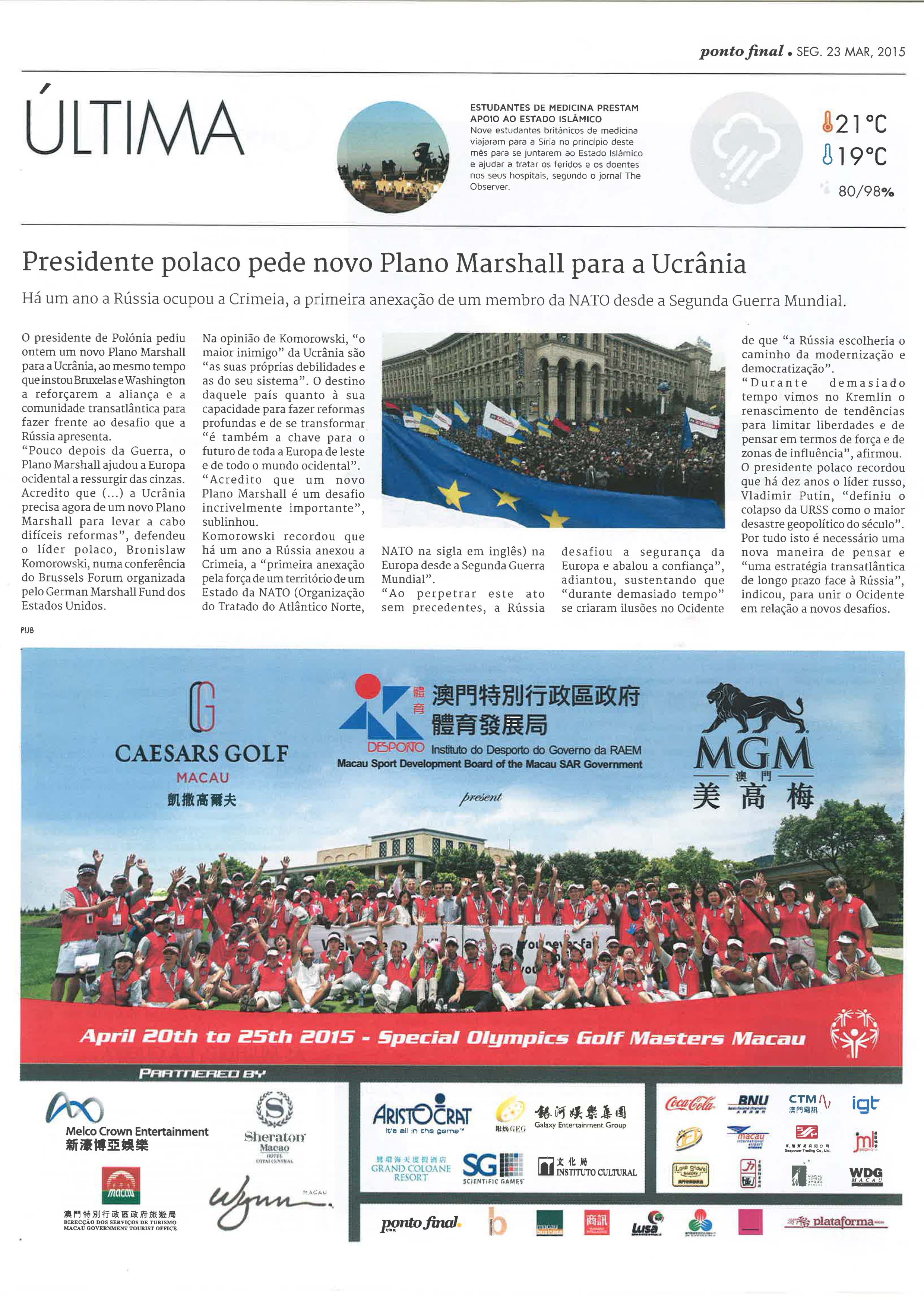 | 04-14-2014 - Advertisement for the Macau Special Olympics Golf Masters 2014 in Tribuna Journal |