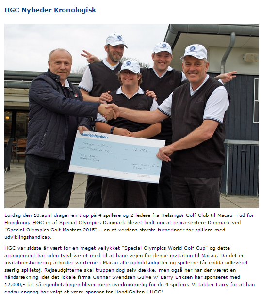 | 4-30-2015 - HGC Nyheder Kronologisk - Article about the Journey of Special Olympics Denmark to Macau |