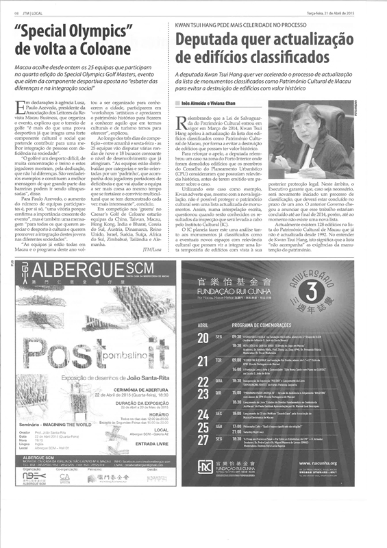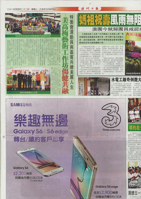| 4-22-2015 - Article in Macao Daily News |