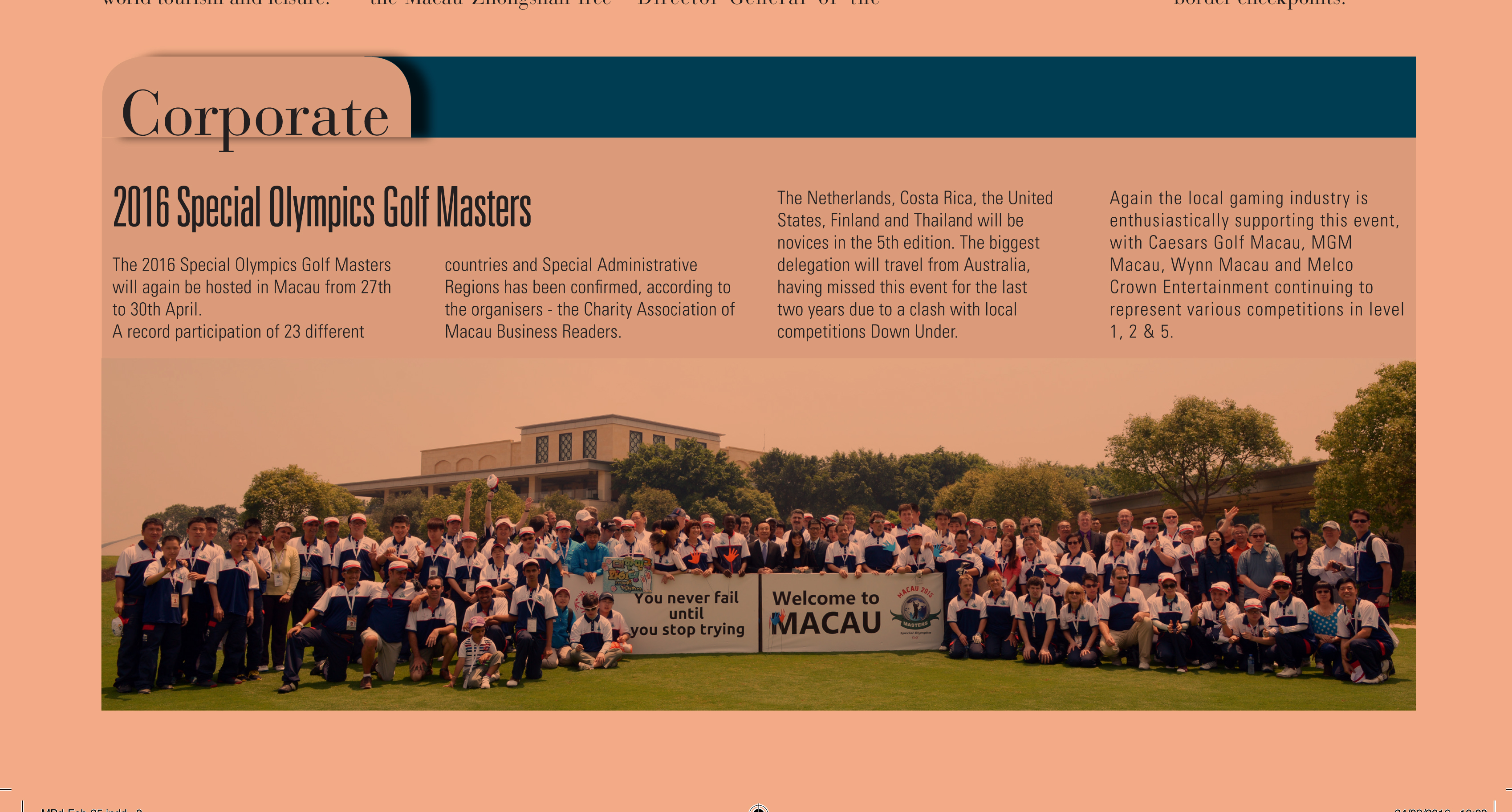 March 2016 - Macau Business Magazine - "2016 Macau Special Olympics Golf Masters" |