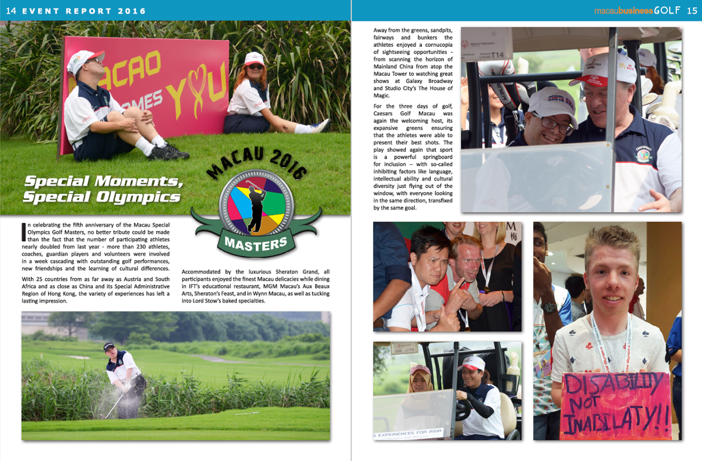 | November 2016 - Event Report - Special Moments, Special Olympics in Macau Business Charity Golf Magazine |