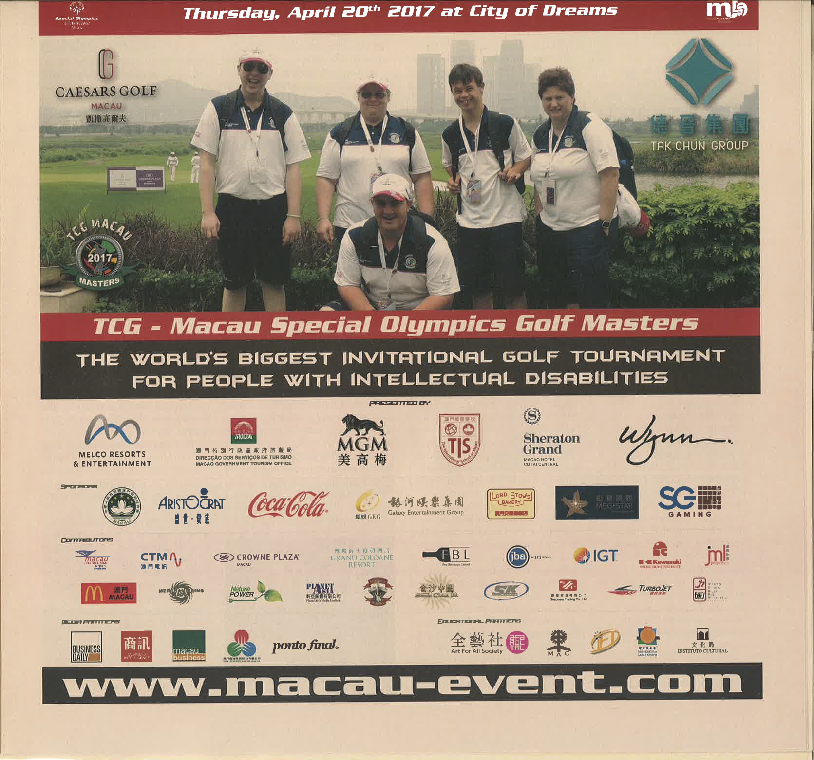 | 01-04-2017 - April Advertisement for the TCG Special Olympics Golf Masters Tournament 2017 in Macau Business |